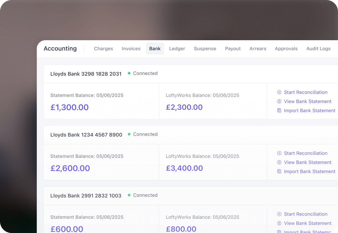 LoftyWorks Client Accounting automates both incoming rent and outgoing payments in real time, streamlining your financial workflow.