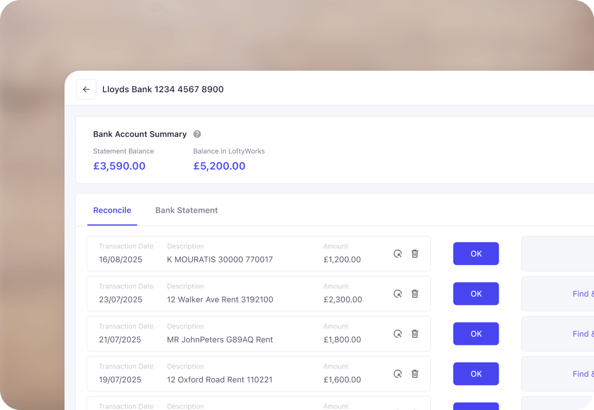 Automatically match incoming payments to the correct tenants, properties, landlords or invoices, no manual input required. Instantly identify unmatched items and resolve discrepancies quickly, ensuring accurate records and smooth cash flow management.